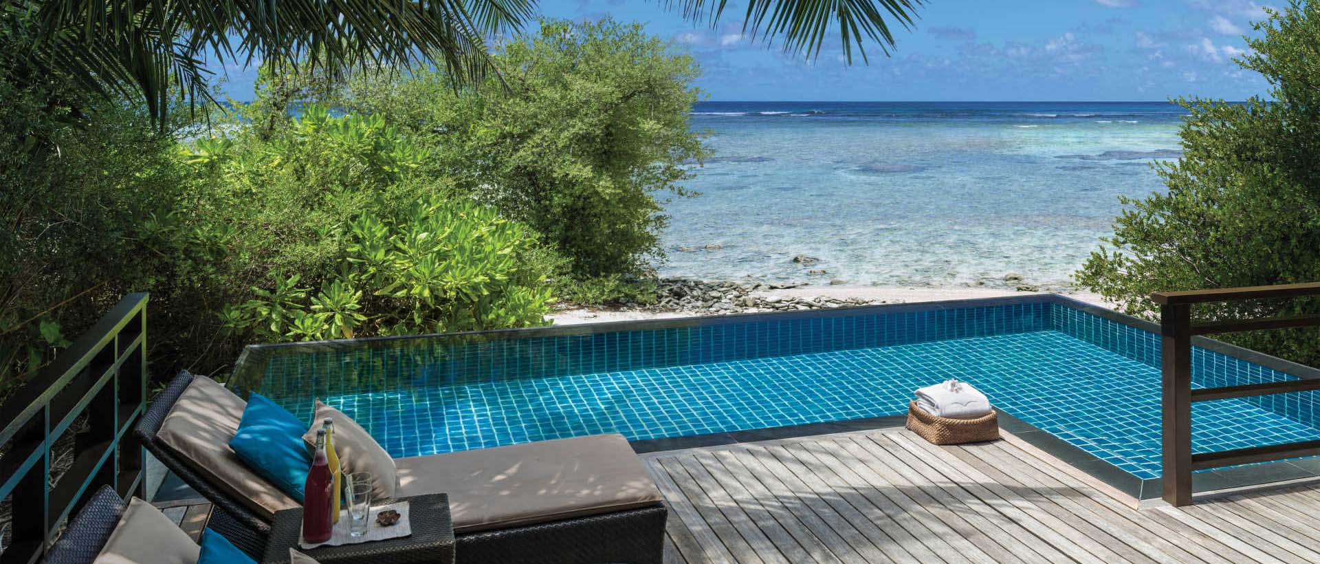 Роскошные виллы Shangri-La's Villingili Resort and Spa, построенные в традиционном островном стиле, расположены в саду, на пляже и над водой.