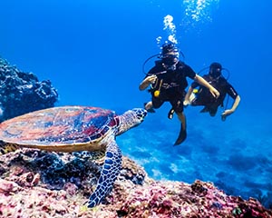 В прозрачной воде свой риф, красивые кораллы, плавают разноцветные рыбки. Можно увидеть акул, черепах. В дайвинг-центре ласты и маски выдают бесплатно.