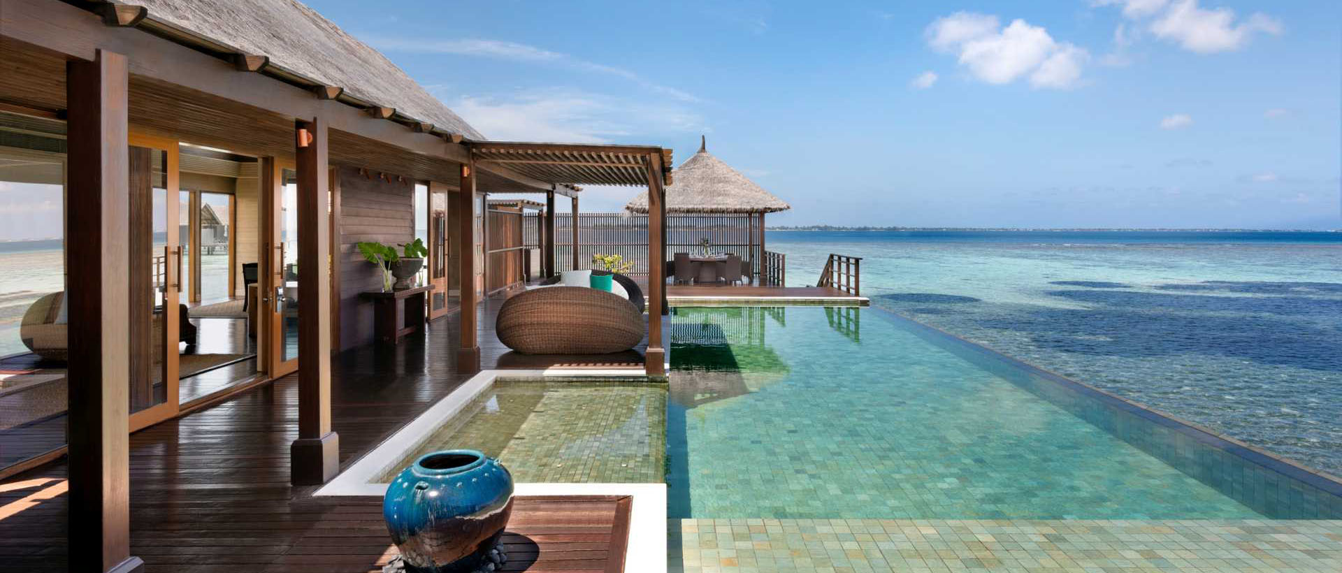 Эксклюзивная водная вилла, оформленная в восточном стиле с применением тикового дерева и перламутра.