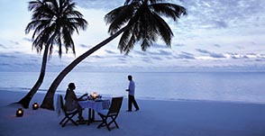 Затем прилёт в международный аэропорт острова Ган, пересадка на катер, и вот уже меньше 10 минут пути до острова по бирюзовой прозрачной воде. Тёплый приём, и туристы на багги отправляются на экскурсию по острову, а личный батлер всё покажет и расскажет.